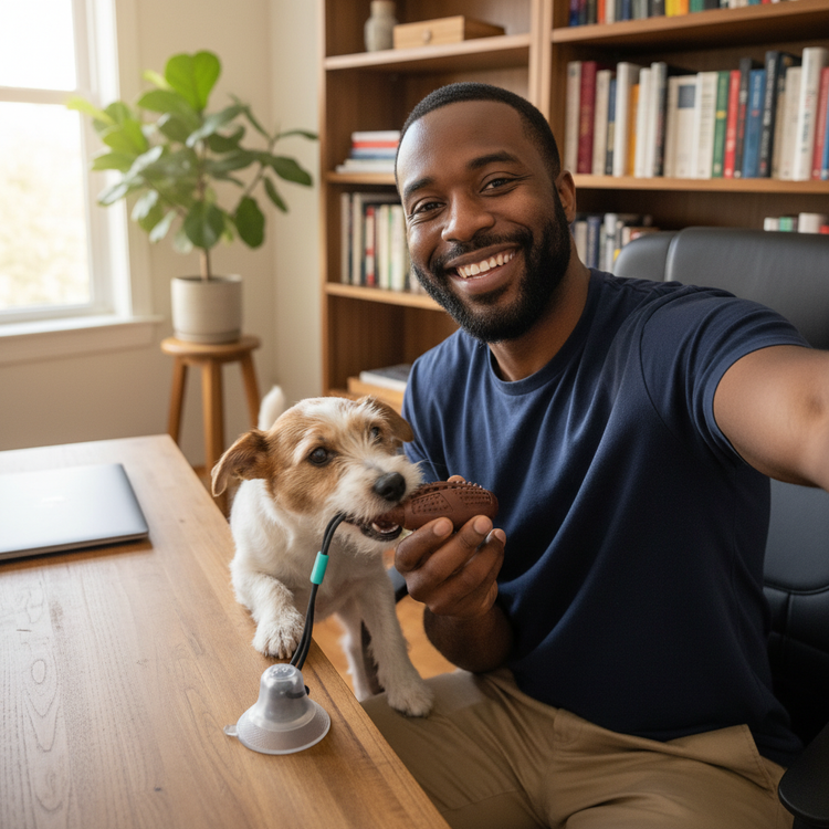 My Labrador can't get enough of the Playbrush! The suction base keeps it in place while she chews. Plus, her teeth look cleaner already.