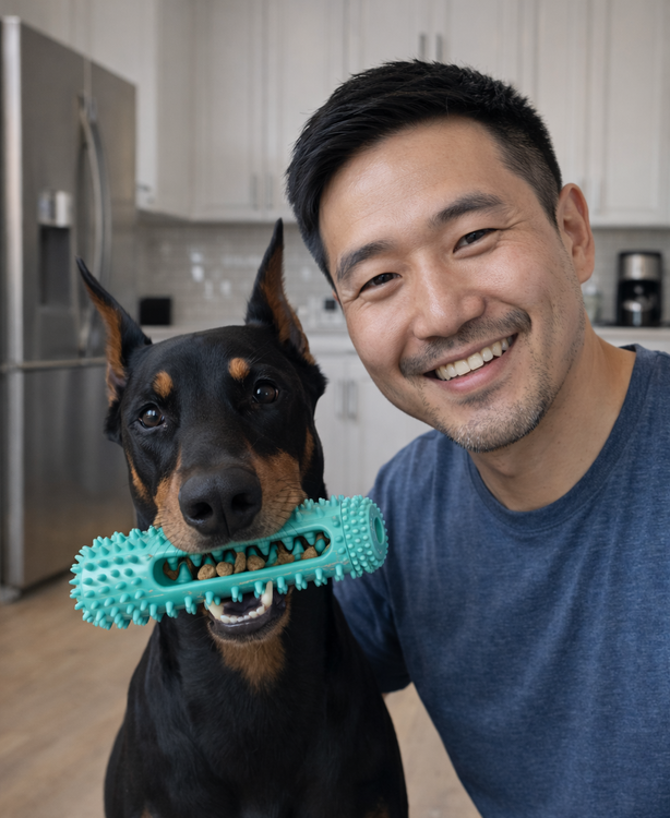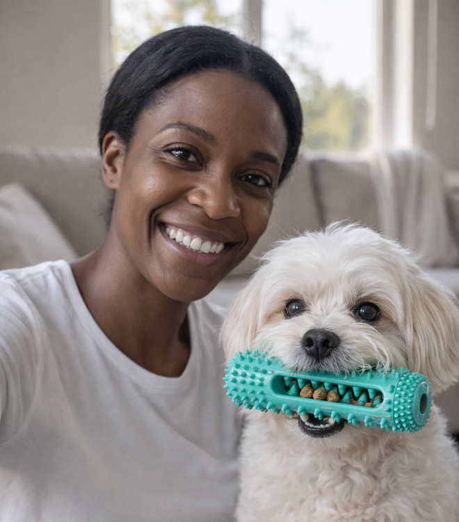 The hollow center can be filled with toothpaste or treats to keep dogs engaged longer and make dental care fun.